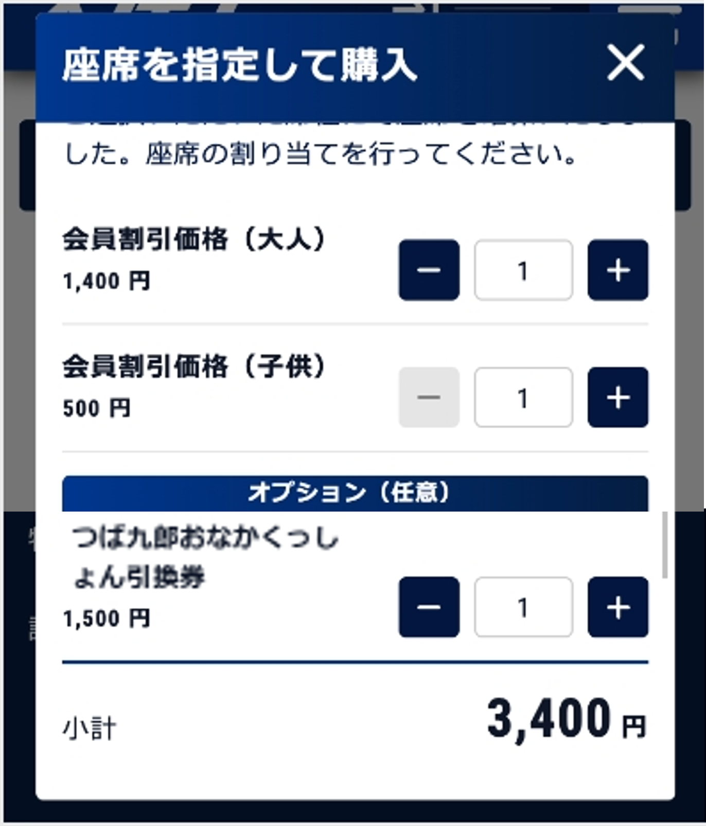 試合日・席種によっては、グッズなどのオプションを選択することも可能です。